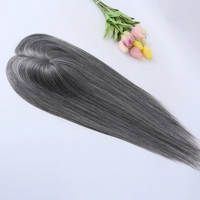 Salt and Pepper Hand tied Mono Base Remy Human Hair Topper For Women【Pre Sale】